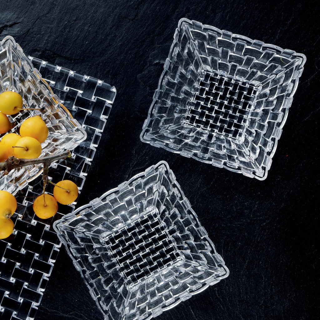 Das Set aus quadratischen Schalen der Kollektion Bossa Nova überzeugt auf Anhieb. Die Serie bietet Kristallgeschirr und -accessoires, die so verführerisch und fesselnd für die Sinne sind wie die Musik und der Bossa-Nova-Tanz selbst. Die klaren Formen der einzelnen Glasstücke werden durch ein geprägtes Strickmuster belebt, das dazu einlädt, sie zu berühren. In der Bossa Nova-Kollektion des deutschen Herstellers Nachtmann verbirgt sich ein Charme, der unbewusst dazu anregt, etwas länger mit seinen Freunden am Tisch zu sitzen und die gemeinsame Zeit zu genießen.