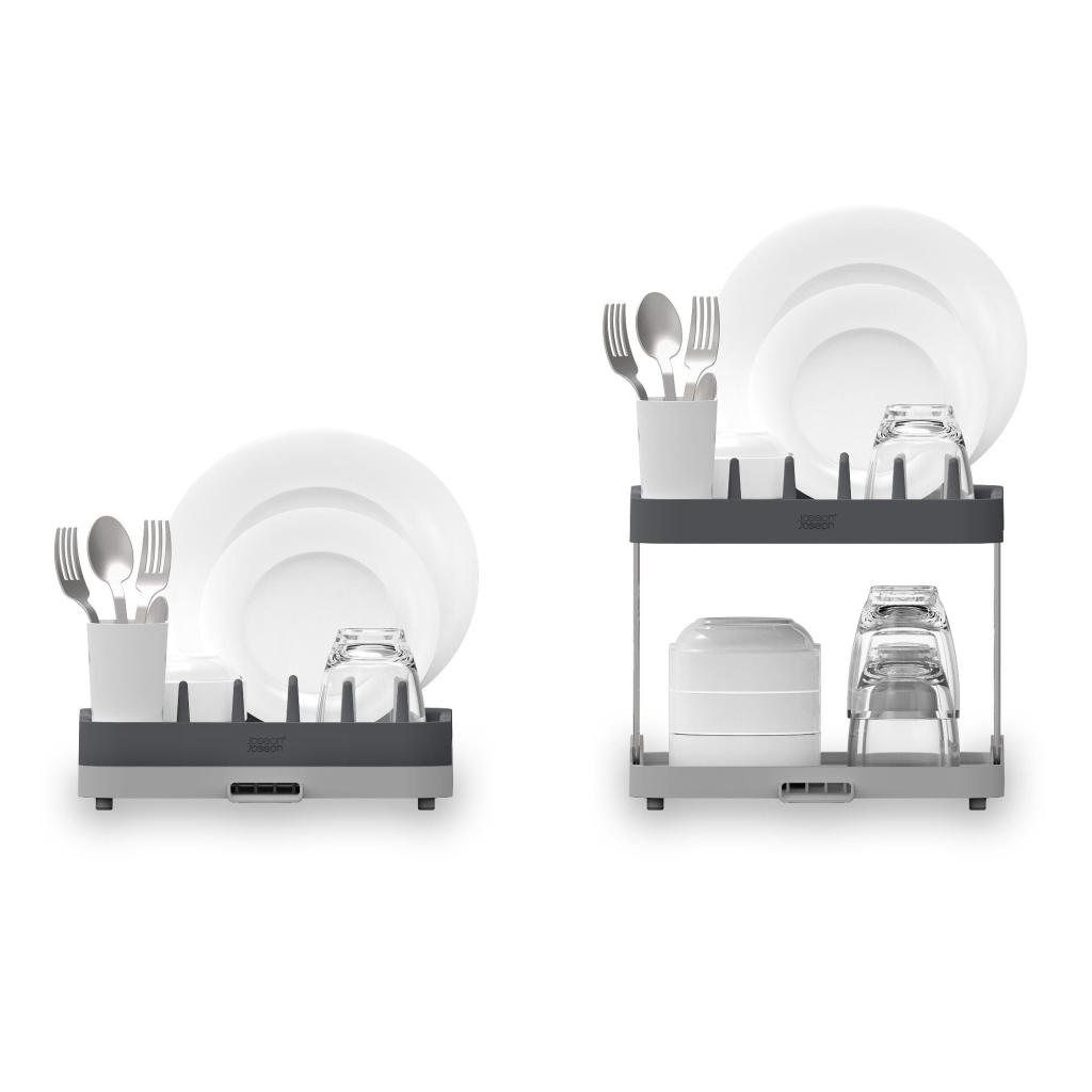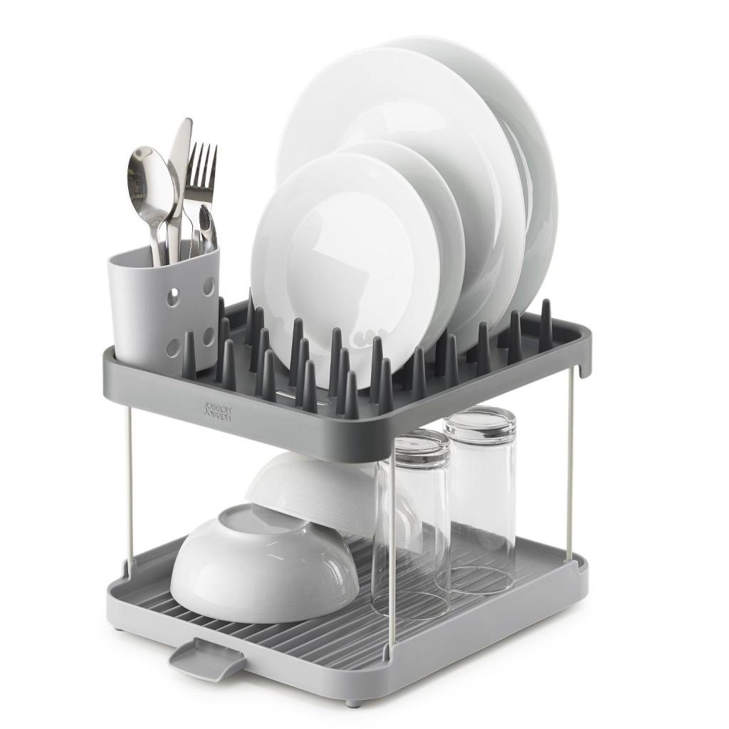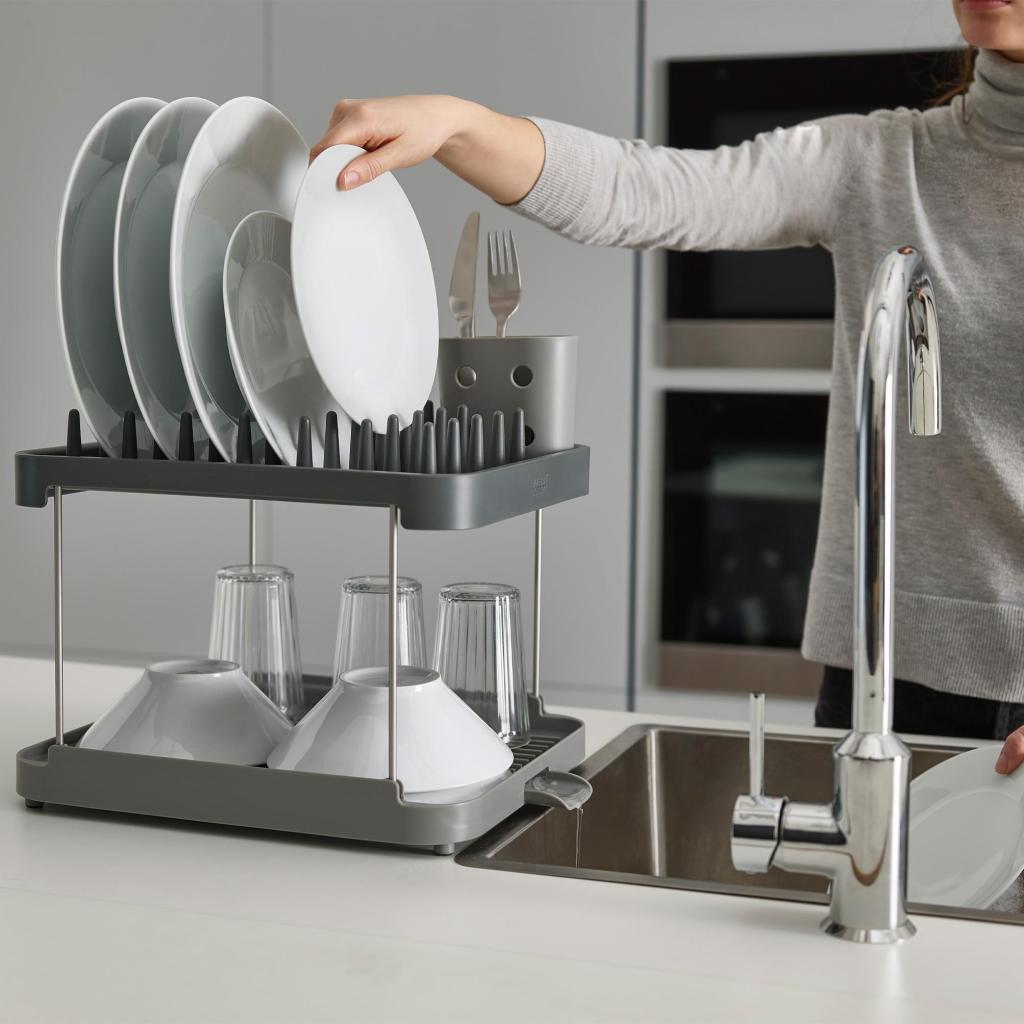- Der zweistöckige Joseph Joseph DUO Geschirrabtropfständer bietet eine praktische Lösung zum Trocknen von Geschirr auf kleiner Arbeitsfläche durch intelligente Höhennutzung.