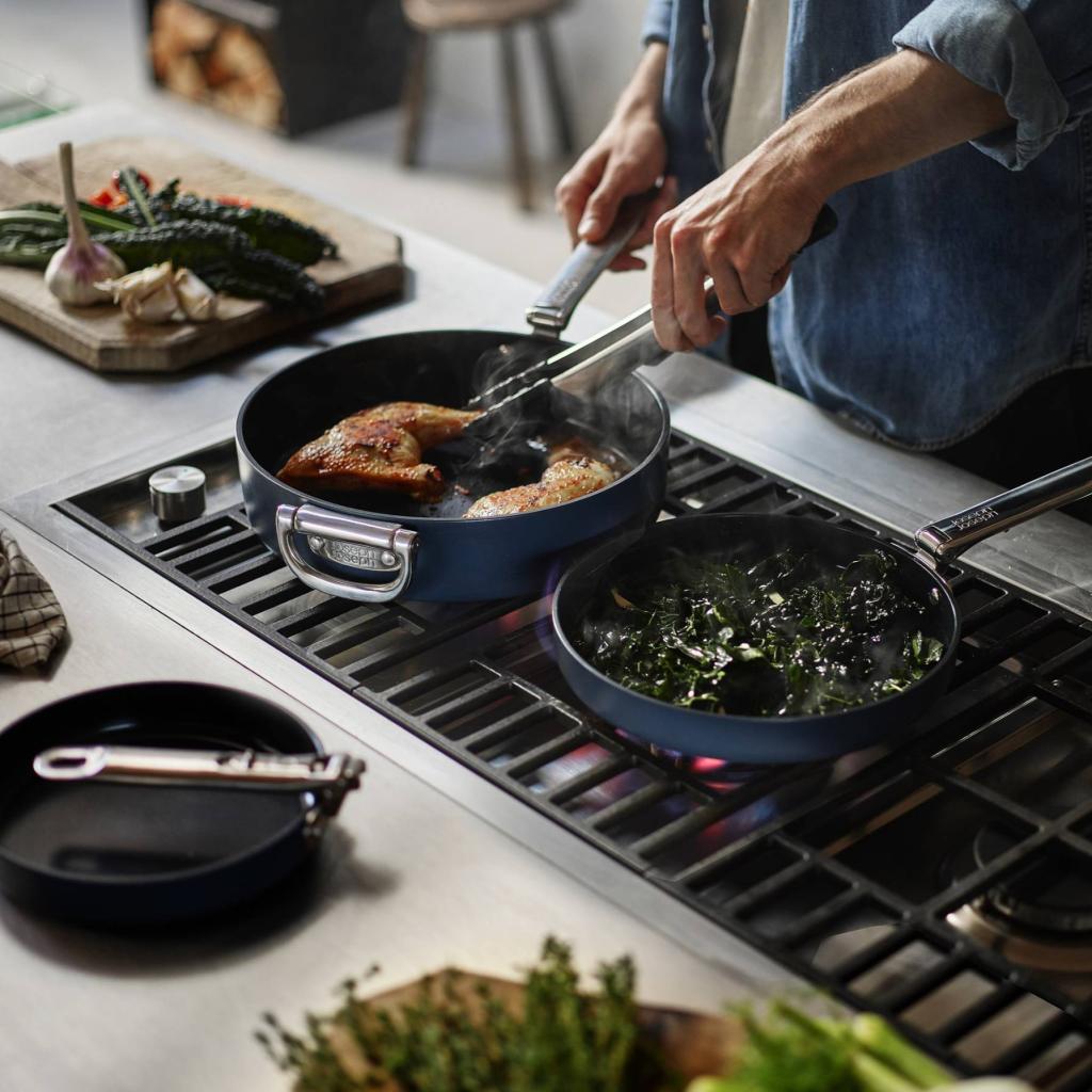 Kochgeschirr, das die Realitäten der modernen Küche versteht - Joseph Joseph SPACE. Sie steht fest und selbstbewusst beim Kochen und ist für alles bereit, vom schnellen Frühstück bis zum improvisierten Abendessen. Aber wenn es an der Zeit ist, aufzuräumen, verändert es seinen Charakter und passt sich dem Raum subtil an, ohne mehr Platz zu beanspruchen als wirklich nötig ist. Was will man mehr?