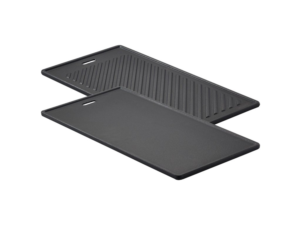 Die 45 cm × 24 cm große gusseiserne Grillplatte ist beidseitig mit Antihaftbeschichtungversehen.