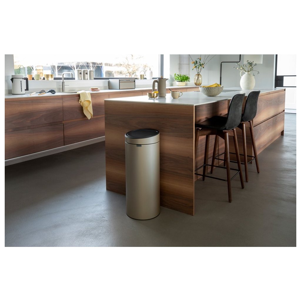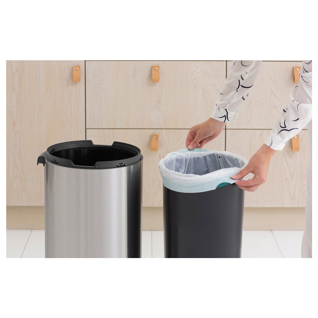 Ein brandneues Designstück von Brabantia kann den Abfall eines ganzen großen Haushalts aufnehmen und nimmt dennoch nicht viel Platzein. Beliebter Silent-Touch-Mechanismus, der ewig hält. Öffnen Sie es mit sanftem Druck. Spezielle Belüftungslöcher gegen Überdruck bei der Entnahme eines vollen Beutels.