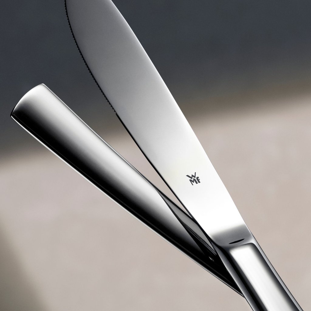 Das Besteck der Designer WMF ist schlicht, funktional und interessant im Design - mit eleganten, schlanken Linien, die auf Ihrem Tisch eine gute Figur machen werden. Das Besteck ist aus hochwertigem Cromargan®-Edelstahl gefertigt, der langlebig ist, keinen Geschmack oder Geruch annimmt und kratzfest ist. Spülmaschinenfest.