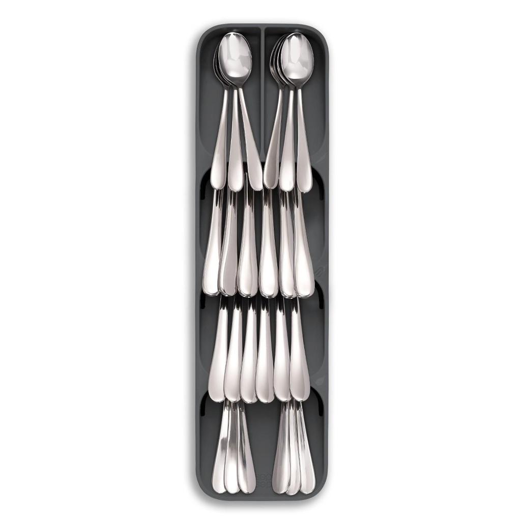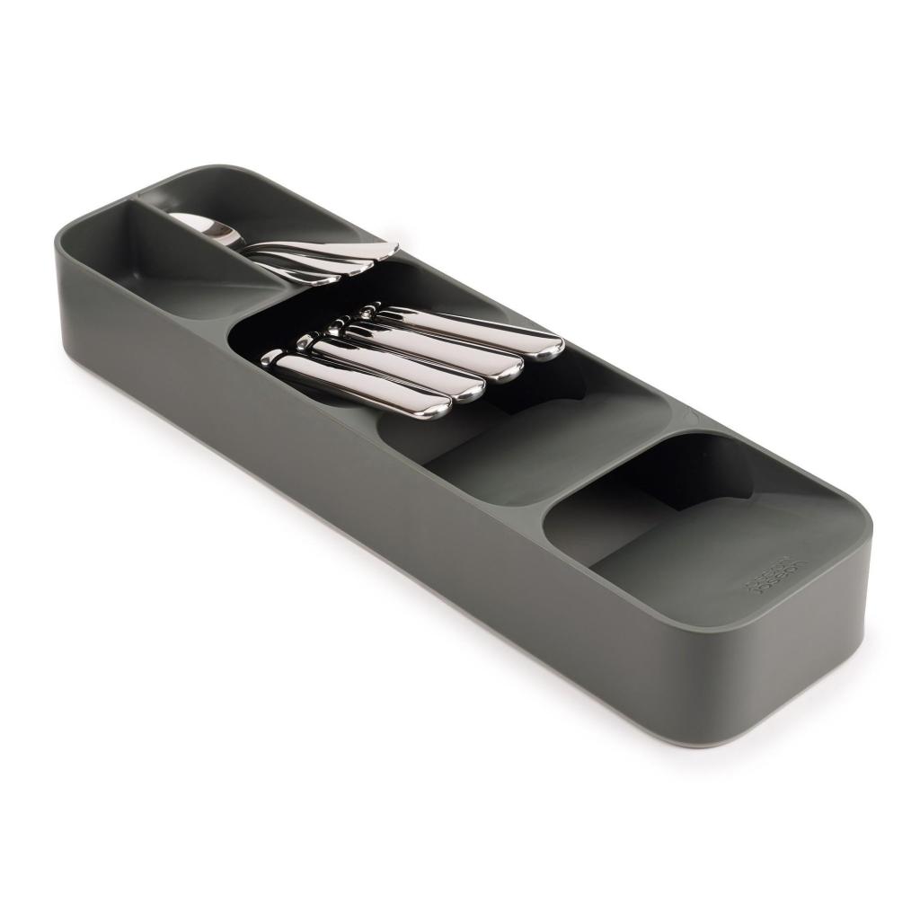 - Der Joseph Joseph DUO Besteckkasten für Schubladen ist eine kompakte Lösung für eine übersichtliche und platzsparende Organisation von Löffeln, Gabeln und Messern in jeder modernen Küche.