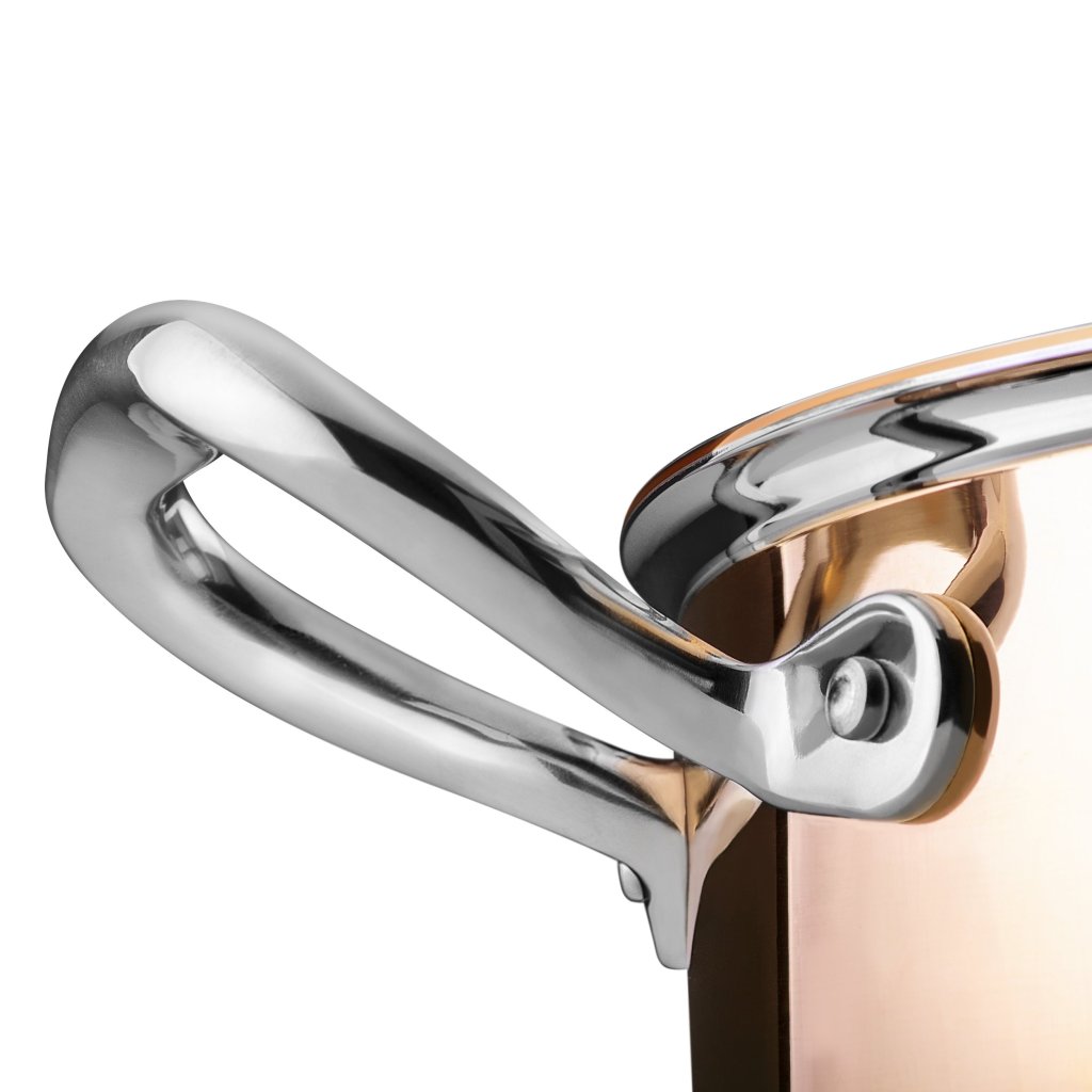 - griffe und Deckelgriff aus Edelstahl mit Kupfereinsatz bleiben beim Kochen kühl