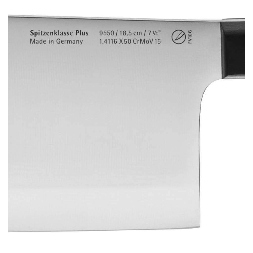Die Messerserie Spitzenklasse Plus des deutschen Unternehmens WMF folgt der traditionellen Messerserie Spitzenklasse, die ein Klassiker unter den Küchenmessern ist. Die genieteten Griffe aus hochwertigem Spezialkunststoff haben abgerundete Kanten und sind im Gegensatz zu den Vorgängerserien sehr angenehm zu greifen. Selbstverständlich verfügen solche hochwertigen Messer auch über eine perfekte Verklebung der Einzelteile, die das Festsetzen von Ablagerungen und Bakterien verhindert.