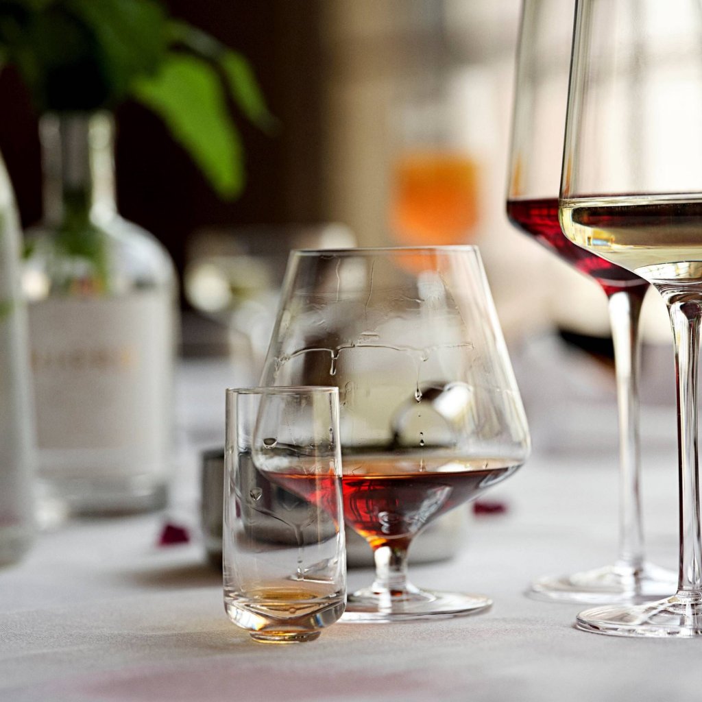 - die Form des Glases begünstigt die sanfte Erwärmung des Getränks in der Handfläche, wodurch alle Aroma- und Geschmackskomponenten freigesetzt werden