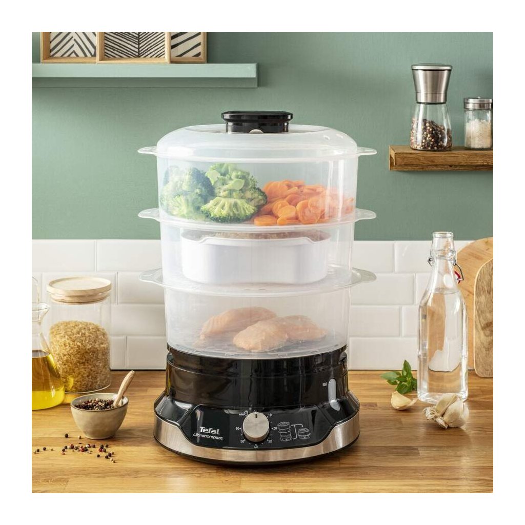 Sie wollen sich gesünder ernähren, haben aber nicht viel Platz für andere Geräte? Probieren Sie diesen Dampfgarer ULTRACOMPACT von Tefal aus und genießen Sie beides - sein ultrakompaktes Format und köstliche und nahrhafte Mahlzeiten, die ohne Öl und mit vielen Nährstoffen und Vitaminen zubereitet werden.