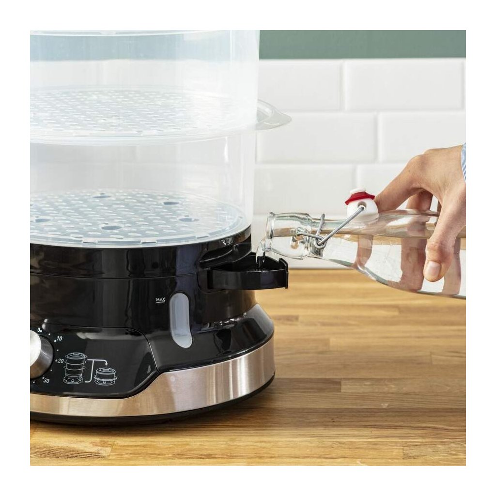 Der Dampfgarer ULTRACOMPACT bietet einen praktischen 60-Minuten-Timer, die Möglichkeit, die Wassermenge zu überwachen und den Wasserstand während des Kochens nachzufüllen sowie eine automatische Abschaltfunktion.