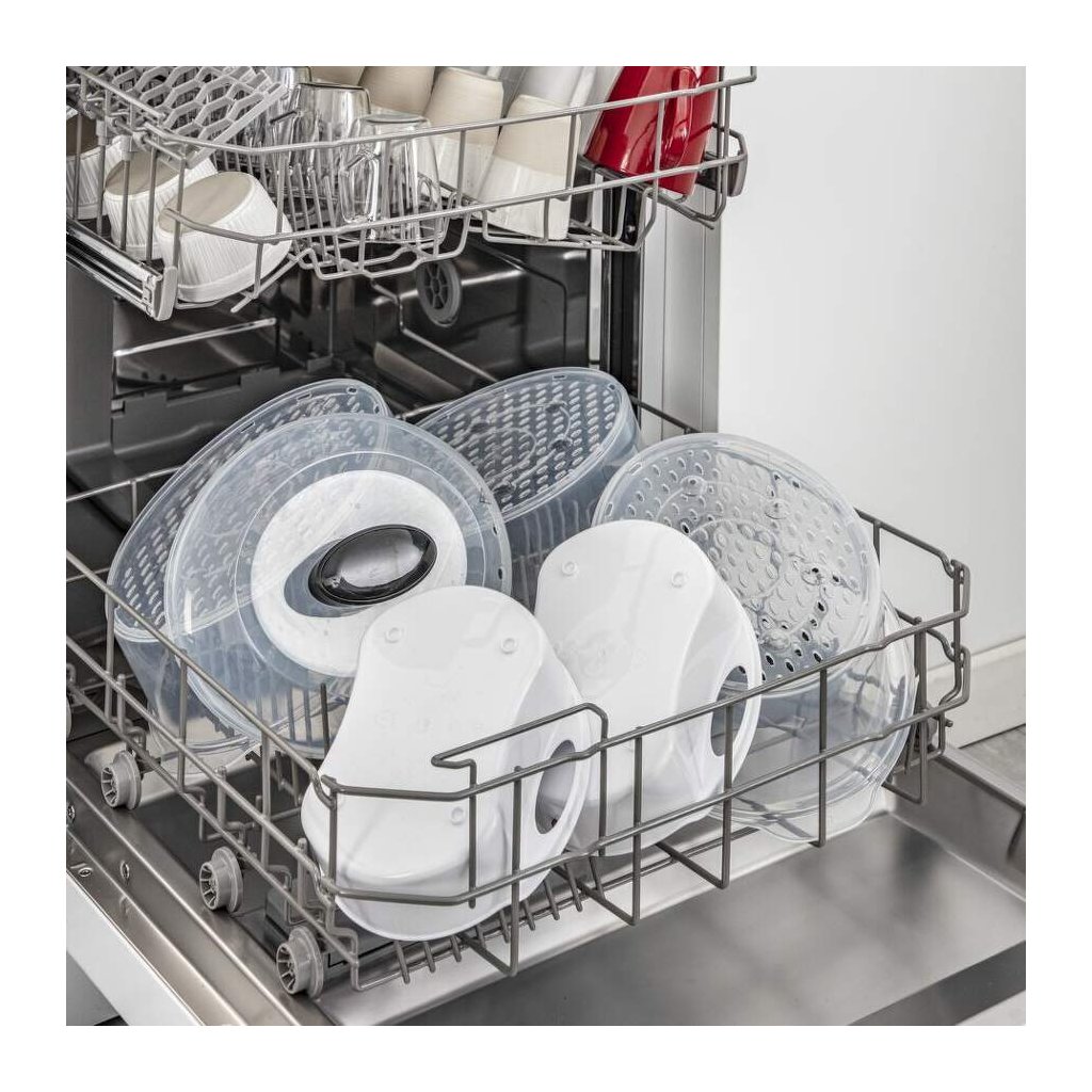 Mit seinem patentierten stapelbaren Aufbewahrungssystemmacht dieser Dampfgarer Platz im Schrank und auf der Arbeitsplatte frei. Dank des mehrschichtigen Dämpfens in 3 Schalen können Sie auch 3 verschiedene Zutaten gleichzeitiggaren.