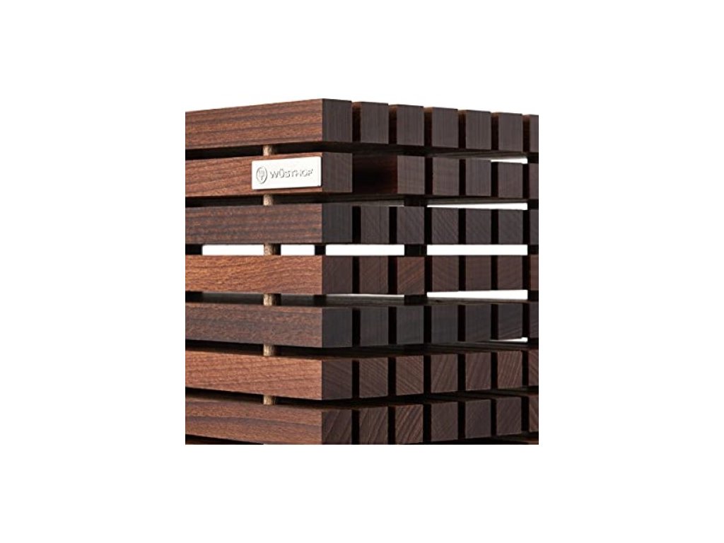 Der Messerblock WÜSTHOF aus schönem Thermobuchenholz stammt aus der Designwerkstatt von Designer Henning Gaulke. Die Messer sind vor dem Abstumpfen geschützt und dennoch auf dem Küchentisch immer griffbereit.