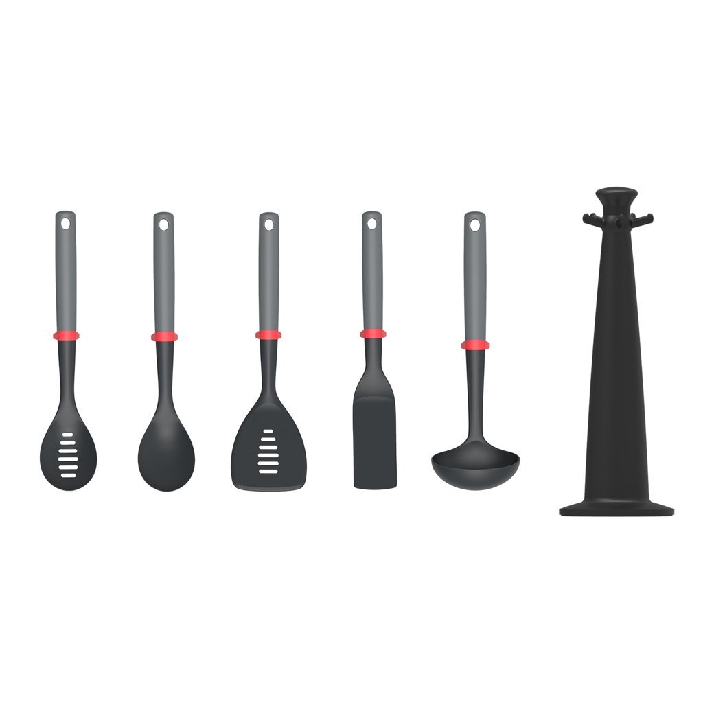 Duo ist ein innovatives Küchensortiment von Joseph Joseph, das innovative Lösungen in jede Küchebringt. Die Produktpalette wurde sorgfältig entworfen, wobei der Schwerpunkt auf Einfachheit, Innovation, Funktionalität und Qualität liegt. Jedes Produkt dieser Serie besteht aus hochwertigen Materialien und ist in einer breiten Farbpalette erhältlich, so dass Sie es mit Ihrer Einrichtung oder anderen Küchenaccessoires und -utensilien kombinieren können. Das Sortiment umfasst zum Beispiel dieses praktische Regal mit Küchenutensilien - 2 Wender, 2 Kochtöpfe und eine Schöpfkelle, alle mit einer Halterung, um die Verschmutzung der Arbeitsfläche zu begrenzen.