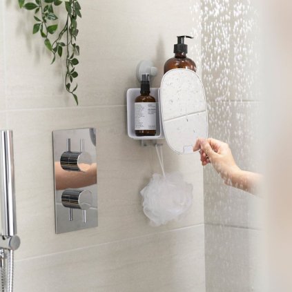 - An der Duschstange oder am Ventil: Dies ist eine gute Wahl, wenn Sie eine kleine Dusche haben. Wenn Sie den Caddy an der Duschstange oder an der Armatur aufhängen, sparen Sie Platz auf dem Boden und haben Ihre Sachen immer in Reichweite.