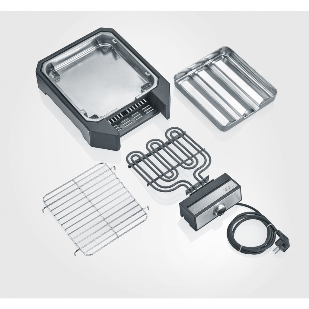 Die Grillfläche von 587 cm² bietet Platz für die optimale Menge an Fleisch, Gemüse und anderen Zutaten, und dank der Temperaturregelung können Sie Ihre Speisen ganz nach Ihrem Geschmack zubereiten.