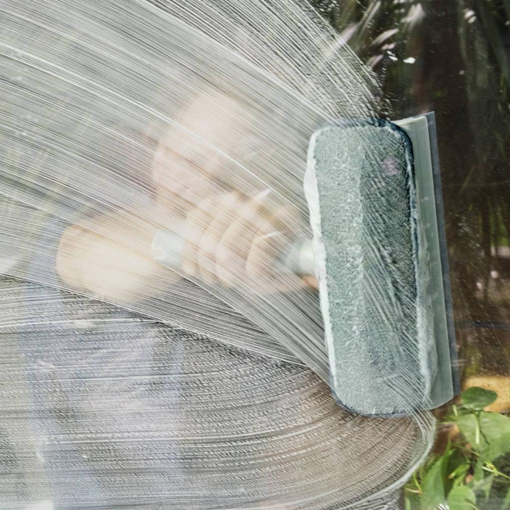 - Das Doppeldesign kombiniert eine Waschfläche und einen Abzieher, so dass Sie das Wasser mit einem einzigen Werkzeug waschen und wegwischen können.