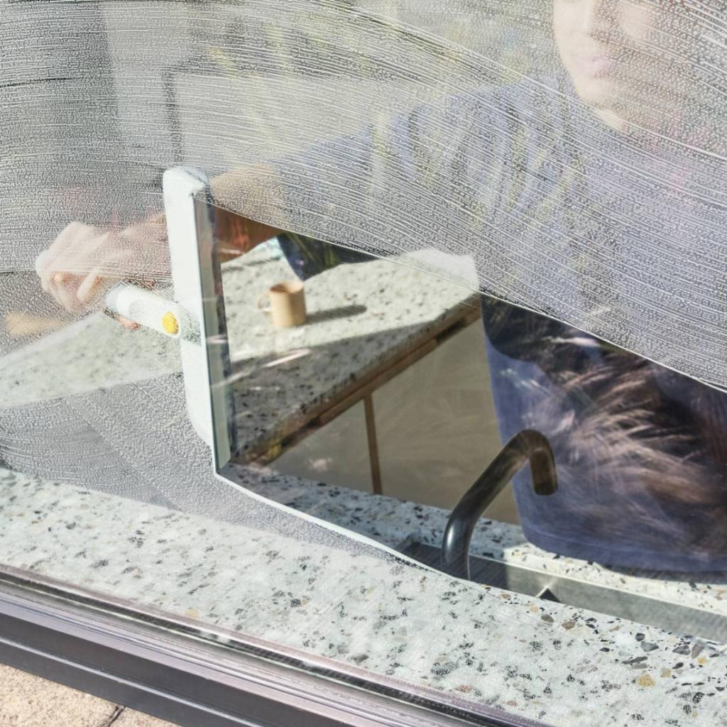 - Der Fensterabzieher Joseph Joseph CLEANTECH erleichtert die Reinigung von Fenstern, Türen und Duschwänden im Haushalt.