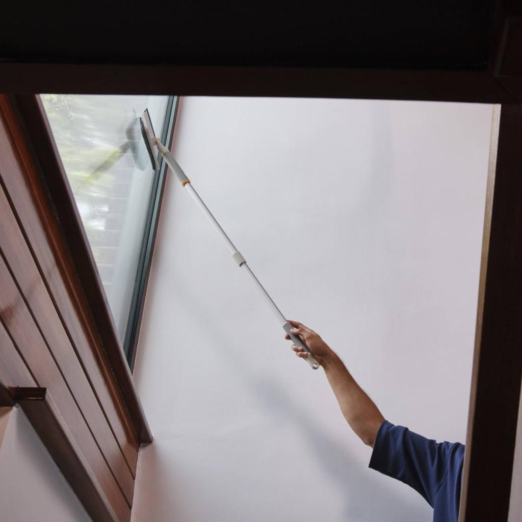 - Die Kompatibilität mit der Teleskop-Verlängerungsstange CLEANTECH ermöglicht es Ihnen, höhere Fenster und schwer zugängliche Stellen zu erreichen.