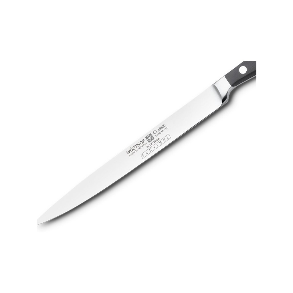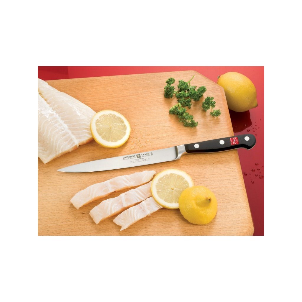 Das Classic Filetiermesser hat eine lange, schlanke und vor allem flexible Klinge mit einer geraden Schneide. Es ist das perfekte Werkzeug zum Reinigen und Filetieren von Fisch.