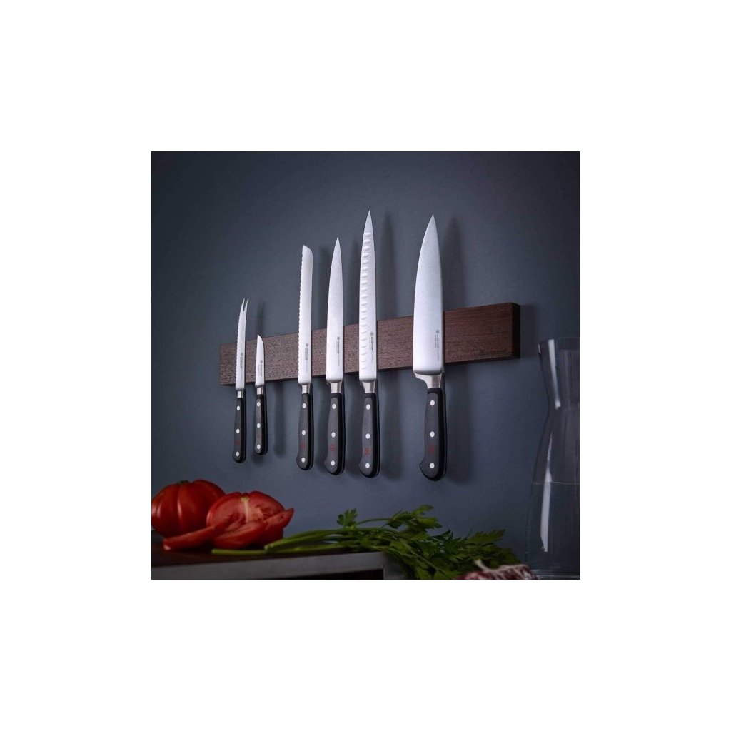 Die Classic Messerserie bringt die Besteckkunst der Marke WÜSTHOF perfekt zur Geltung. Sie ist die beliebteste Serie aus dem WÜSTHOF-Markensortiment, nicht nur wegen ihres hohen Nutzungskomforts. Es handelt sich um klassische Messer mit vernieteten Griffen, deren Klingen aus einem einzigen Stück aus legiertem rostfreiem Messerstahl X50CrMoV15 geschmiedet sind. Dank der Verwendung hochwertiger Materialien und des Präzisionsschliffs verfügt er über eine hohe und lang anhaltende Schärfe. Die hochfunktionellen Classic-Messer werden mit großer Sorgfalt bis ins kleinste Detail gefertigt. Genau wie von den Messern aus Solingen erwartet. Nach dem ersten Gebrauch werden Sie kein anderes Messer mehr haben wollen..