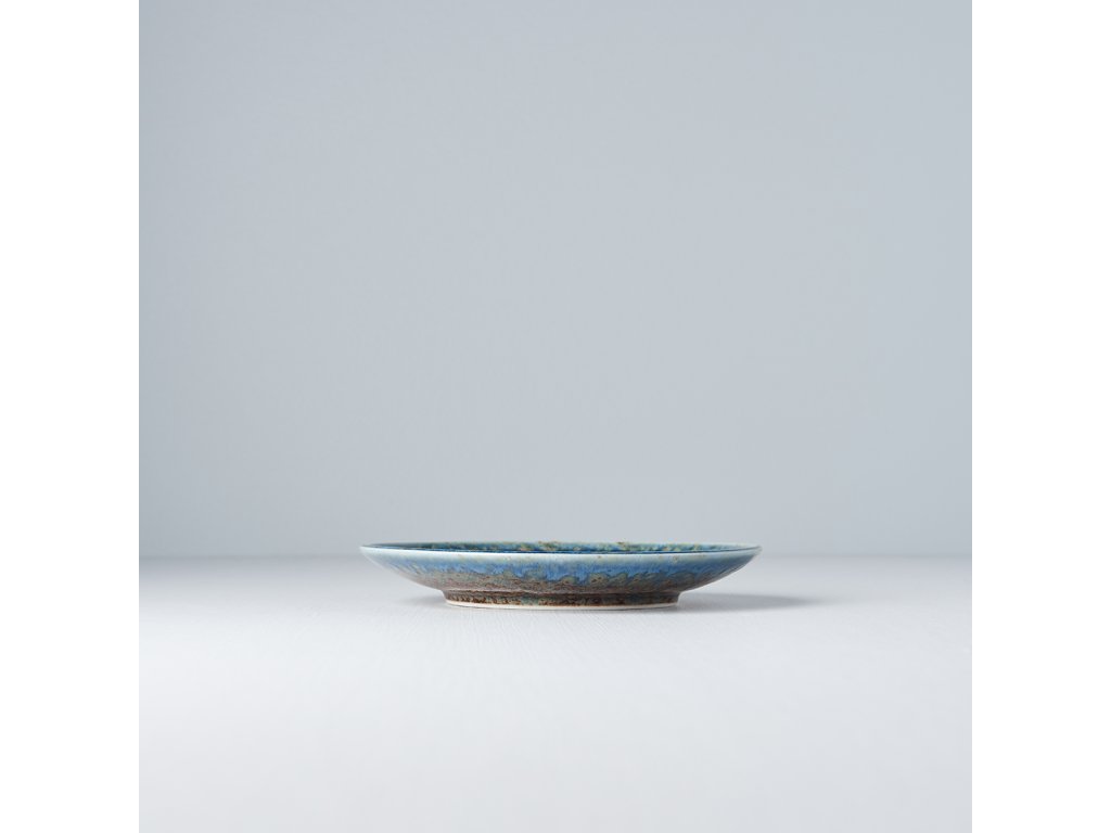 Der flache Teller aus der Earth & Sky Kollektion von Made in Japan stellt die Farben der Erde und des Himmelsdar. Es ist handgefertigt aus hochwertiger Naturkeramik, die keine schädlichen Stoffe enthält. Jedes Stück ist ein Original. Die Keramik wird direkt aus Japan importiert. Der Teller ist spülmaschinen- und mikrowellenfest.