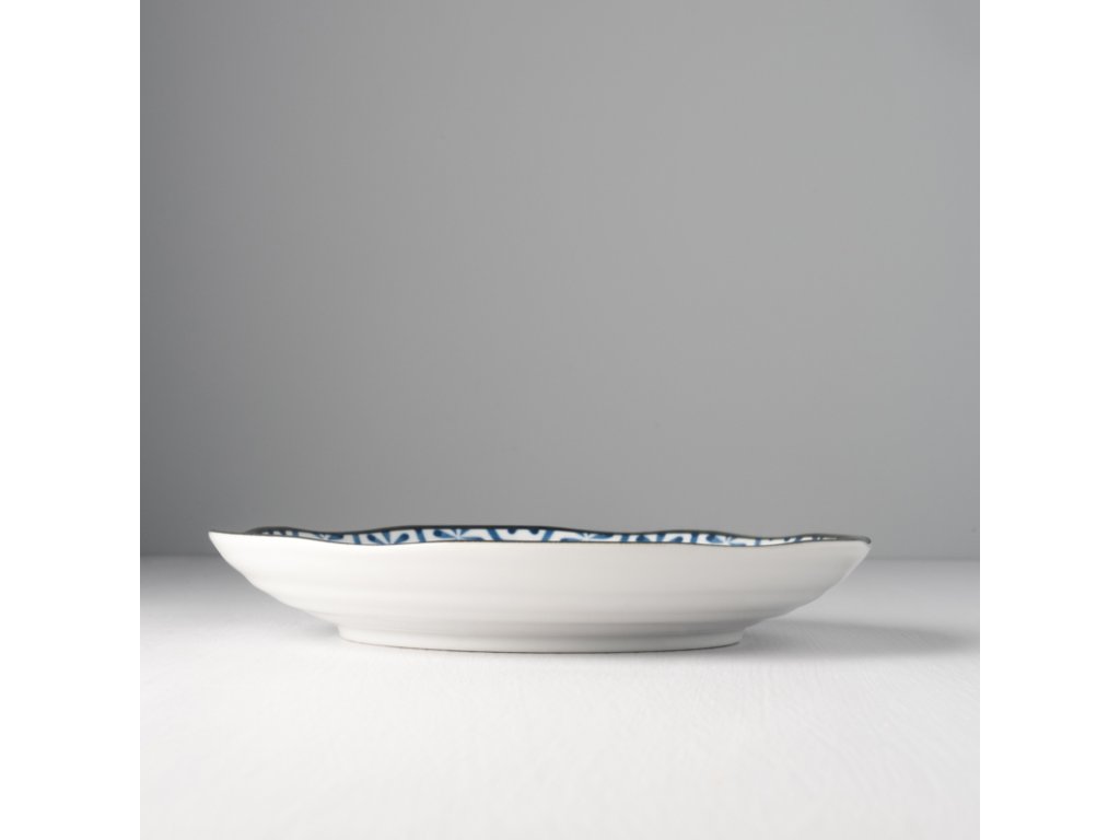 Der flache Teller aus der Indigo Ikat Kollektion von Made in Japan besticht vor allem durch seine interessanten geometrischen Muster und den unregelmäßigen Rand. Es ist handgefertigt aus hochwertiger Naturkeramik, die keine schädlichen Stoffe enthält. Jedes Stück ist ein Original. Die Keramik wird direkt aus Japan importiert. Der Teller ist spülmaschinen- und mikrowellenfest.