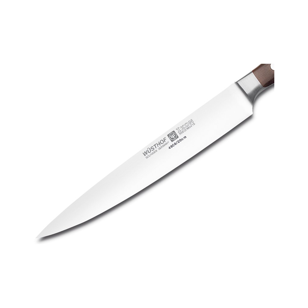 Die Marke WÜSTHOF hat in ihr Sortiment die Luxusserie der IkonMesser aufgenommen, die aus einem einzigen Stück aus legiertem rostfreiem Besteckstahl X50CrMoV15 geschmiedet werden. Dies sind Messer perfekt ausbalanciert mit einer perfekten Schneide. Die außergewöhnliche Schärfe der Ikon-Messer wird durch präzises Honen von Hand und abschließendes Polieren der Klingen gewährleistet. Die Qualität der Klinge ist hoch und, was wichtig ist, leicht wiederherstellbar.
