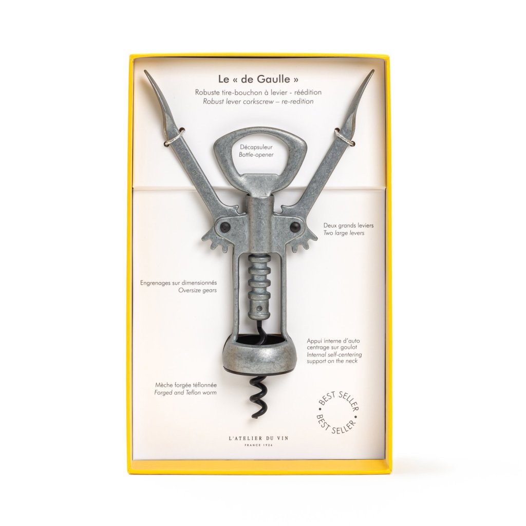 - der Flügelkorkenzieher LE "DE GAULLE" ist seit 1970 eine Ikone von L'Atelier du Vin