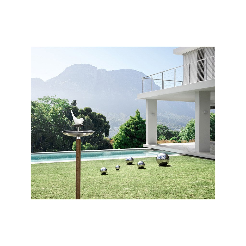 Das FUERA Vogelfutterhaus ist aus langlebigem, mattem Edelstahl und Hartholz gefertigt. Dank der verwendeten Materialien kann es problemlos der Witterung standhalten. Im Sommer als Vogelfutterspender oder Vogeltränke, im Winter als Vogelfutterspender mit Edelstahlhaube zum Schutz des Futters vor Schneefall.