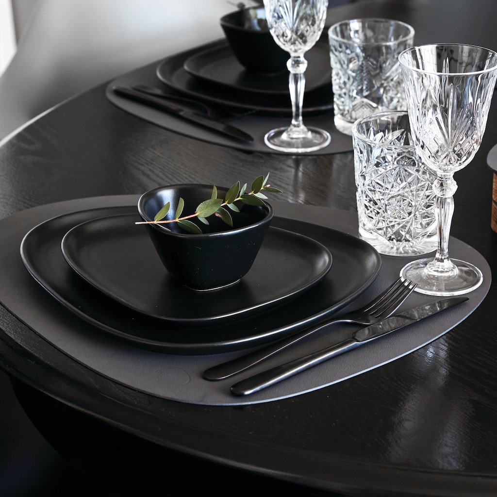 - der tiefschwarze Farbton bildet einen auffälligen Kontrast auf dem gedeckten Tisch und unterstreicht die Farben der servierten Speisen