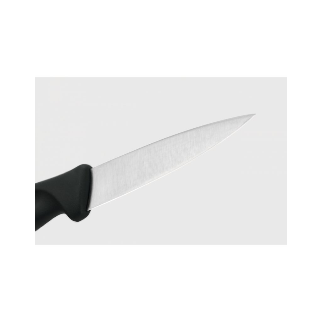 Kleines Gebrauchsmesser mit dünner Klinge und gerader Schneide: Dieses Gemüsemesser ist zum Schneiden von Zwiebeln und Kräutern gedacht und eignet sich auch zum Schneiden, Putzen und Dekorieren von Obst und Gemüse. Mit seiner scharfen, spitzen Klinge eignet sich dieses Gemüsemesser auch als Schälmesser.