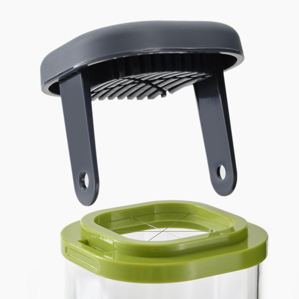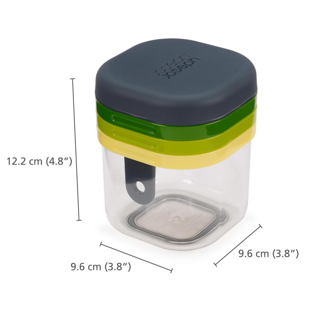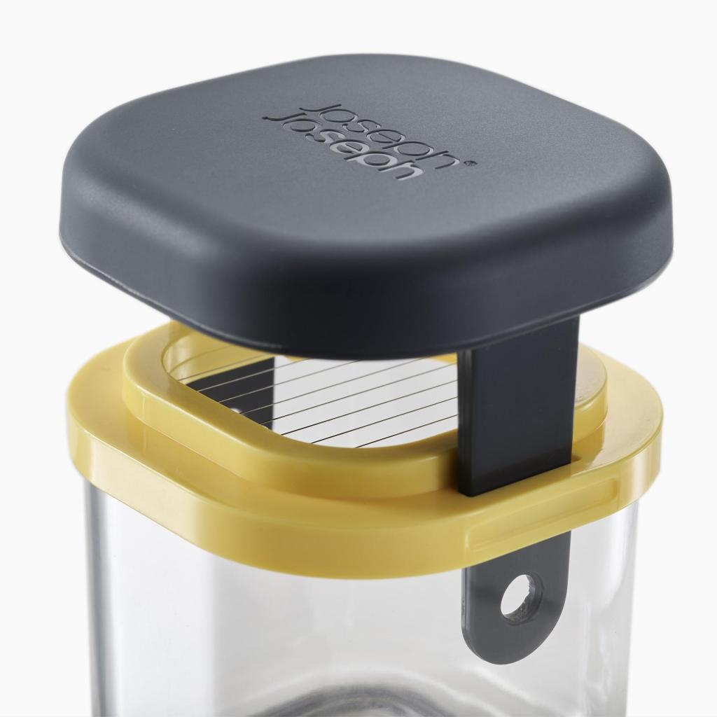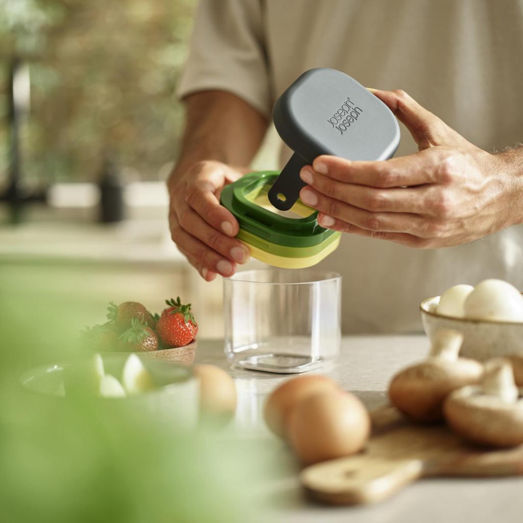 - Der kompakte Gemüseschneider Joseph Joseph MULTI-PREP MINI ermöglicht dank dreier austauschbarer Edelstahlaufsätze, die in einem praktischen Behälter aufbewahrt werden, ein schnelles und präzises Schneiden von weicheren Lebensmitteln.