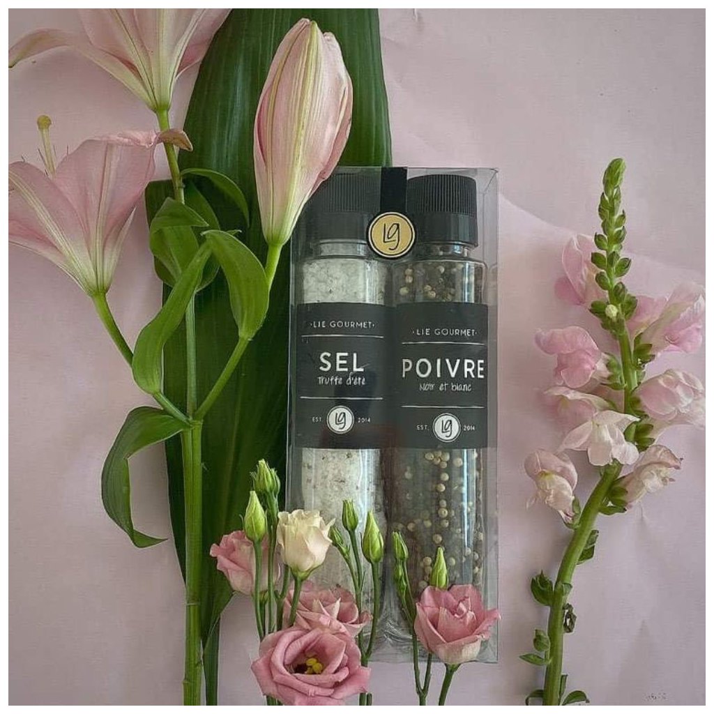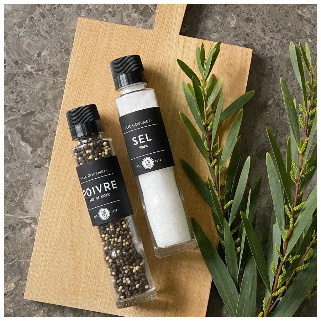 Geschenkset, Meersalz und schwarzer/weißer Pfeffer, mit Mühlen, Lie Gourmet