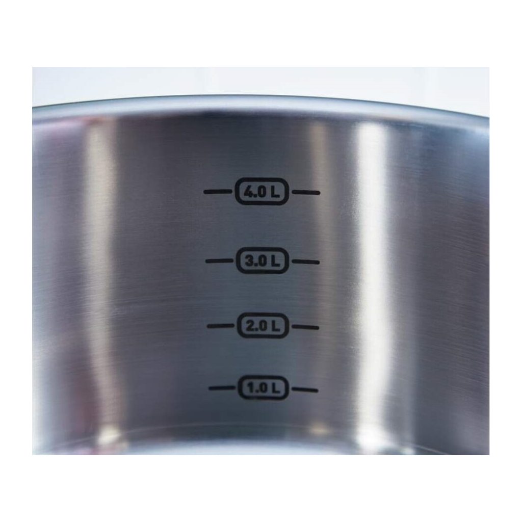 Sie können dieses Kochgeschirr auf allen Arten von Kochfeldern, Induktion und auch im Backofen bei Temperaturen bis zu 250°Cverwenden, und sogar können Sie es sicher in der Spülmaschinewaschen. Im Inneren finden Sie leicht ablesbare Linien, damit Sie alles genau abmessen können, was das Kochen erleichtert.