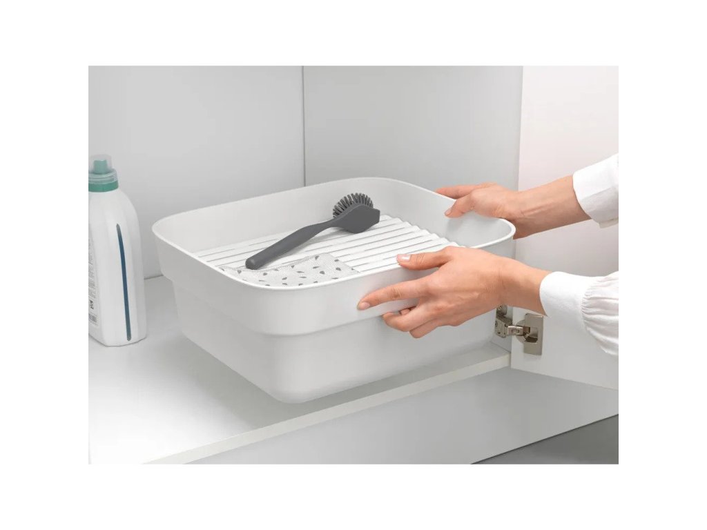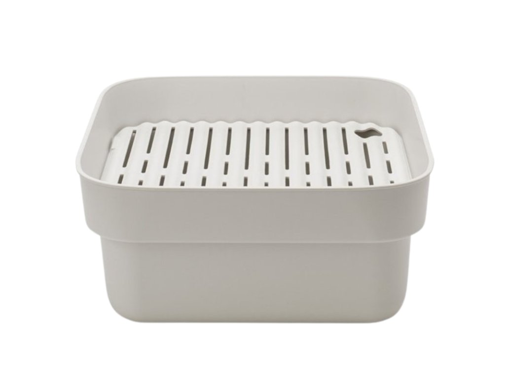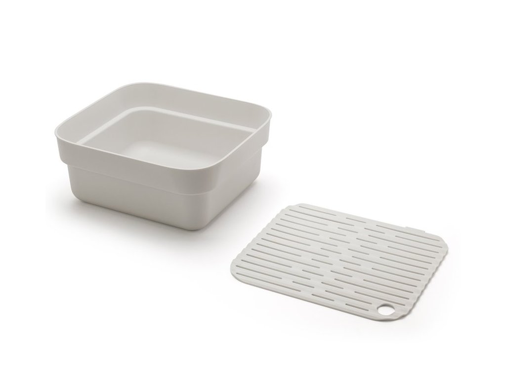 Diese quadratische und multifunktionale Waschschüssel mit Trockenunterlage BrabantiaSINKSIDE passt in Ihr quadratisches oder rechteckiges Waschbecken und erfüllt Ihre organisatorischen Bedürfnisse. Trennen Sie die große Schüssel von ihrer Trockenmatte, um sie stilvoll zu waschen und zu trocknen. Und wenn Sie fertig sind, dient das Kit auch zum Aufbewahren und Trocknen Ihrer Waschmittel. Einfach eine Superbowl!