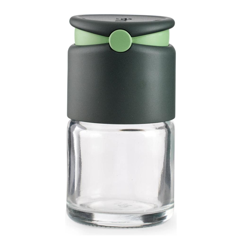 Wenn man in der einen Hand einen Holzlöffel hält und in der anderen Panik verspürt, ist das Letzte, was man braucht, ein Gewürzdose für Fingergymnastik. Dieser graue Spender hat einen Deckel, der sich mit einem einfachen Klick öffnen lässt, und zwei Dosiermöglichkeiten. So landet der Oregano nicht auf der Theke, sondern dort, wo er hingehört - auf dem Essen und nicht in der Küchenchronik.