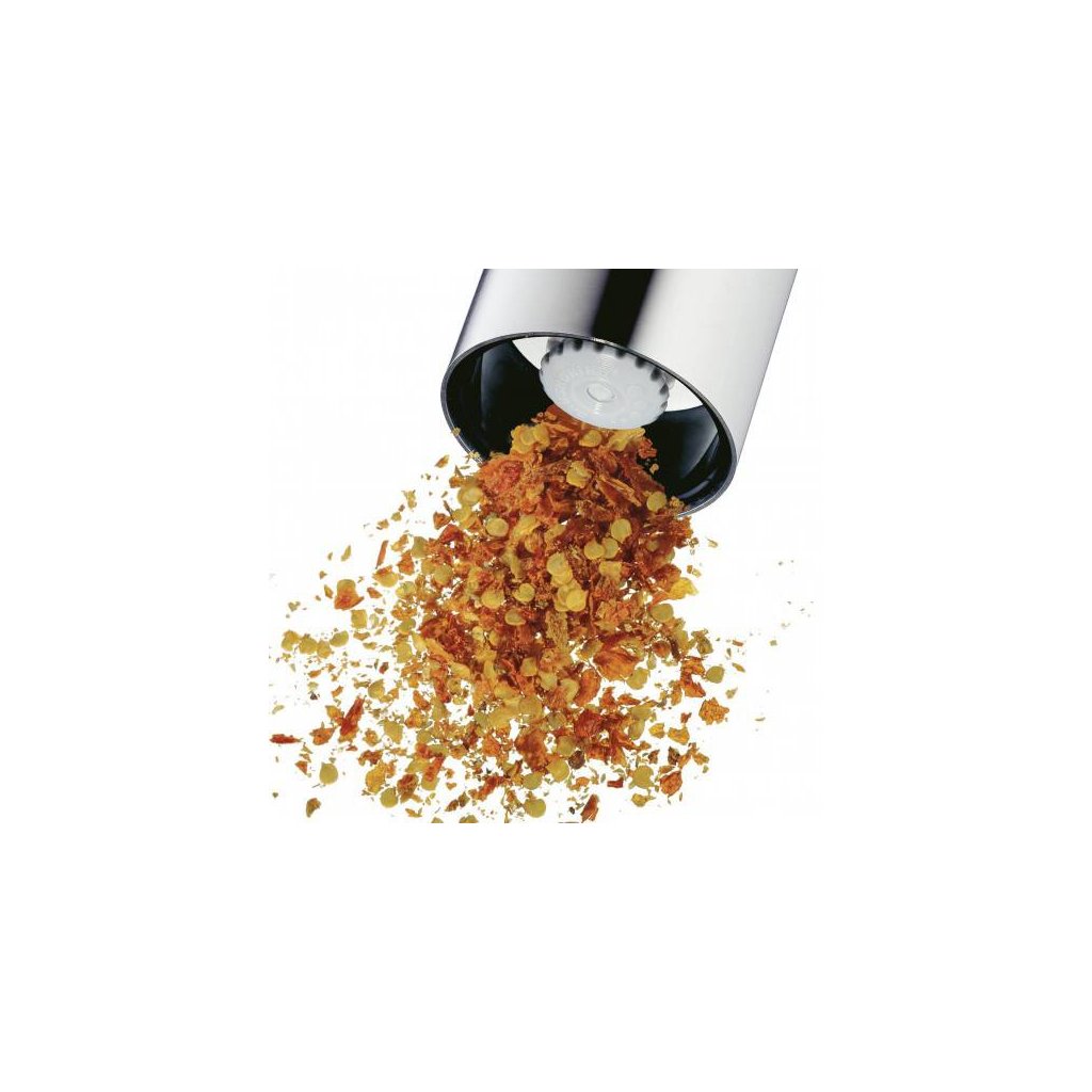 Die Universal-Gewürzmühle WMF De Luxe in der Designvariante. Die Kombination aus Cromargan® (Edelstahl 18/10) und Glas wirkt besonders edel.