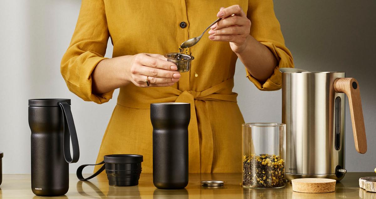 Ein Wasserkocher, der Stil hat. Eine Thermoskanne für den Schreibtisch, ein Thermo-Becher für unterwegs. Teesiebe und Behälter für Zucker und Honig. Notwendigkeiten, mit denen Sie Ihre Lieben erfreuen, die gerne Momente der Entspannung mit einer heißen Tasse genießen.