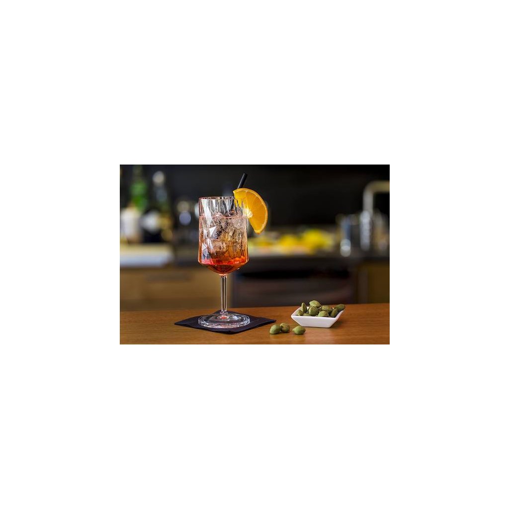 Obwohl es aus transparentem Kunststoff besteht, sieht es dank der ans Kristallglas errinernden Materialstruktur höchst elegant aus und liegt gut in der Hand. Das Glas wirkt dezent, aber es ist auch praktisch unzerstörbar und wird nicht zerkratzen oder zerbrechen, wenn man es fallen lässt.