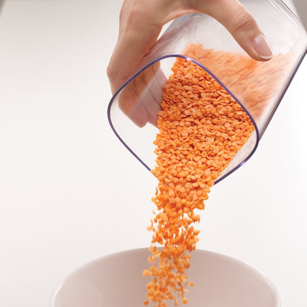 Set JOSEPH JOSEPH Podium 5 Gläser mit einem praktischen Ständer, der eine einfache Entnahme der einzelnen Gläser unabhängig von ihrer Position im Ständer ermöglicht. Die Gläser sind für die Aufbewahrung von Trockenfutter bestimmt. Die Kappen sind mit einer Silikondichtung versehen. Im Set sind 5 Kannen mit einem Volumen von 1,9 l / 1,3 l / 2x 0,9 l / 0,5 l enthalten.