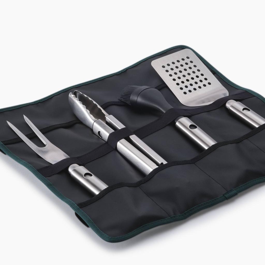 - Das Grillset Joseph Joseph GRILLOUT beinhaltet vier Edelstahlwerkzeuge und einen praktischen Koffer für die komplette und bequeme Zubereitung von Speisen beim Grillen im Freien.