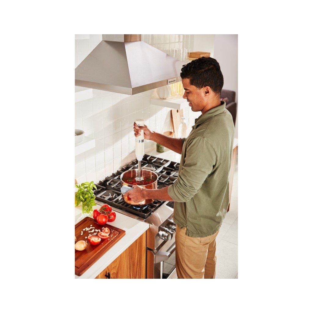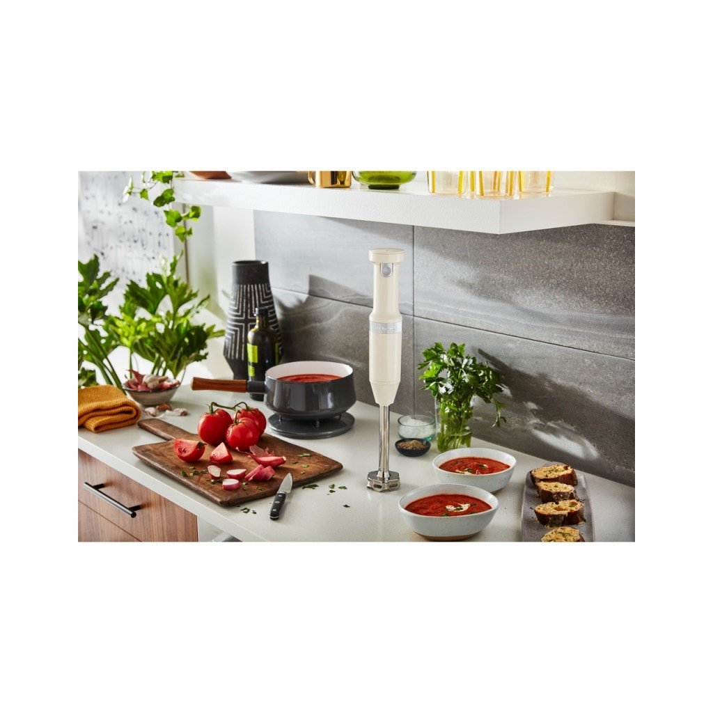 Der Stabmixer 5KHBBV53 mit optionaler Geschwindigkeitsregelung und einfacher "Einhand"-Bedienung ohne Bindekabel bietet unendliche Möglichkeiten in einem einzigen Gerät.