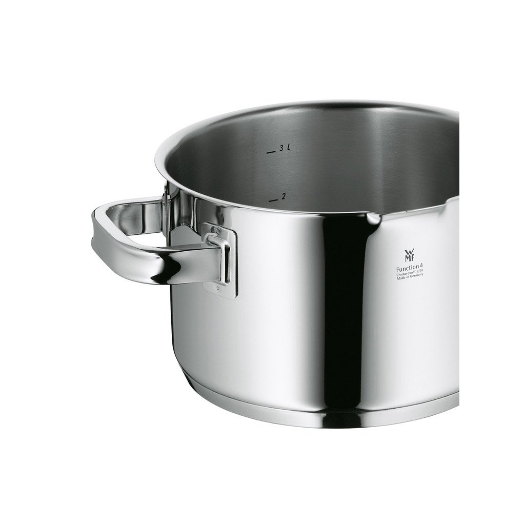 Die Function 4 Töpfe aus poliertem 18/10 Cromargan®-Edelstahl werden durch ihre hochwertigen Materialien, ihre Verarbeitung und ihr durchdachtes Design schon beim ersten Gebrauch zu Ihren Favoriten. Im Vergleich zu herkömmlichen Töpfen bieten sie 4 zusätzliche Funktionen. Ihr neuartiges trendiges Design passt in moderne Küchen. Function 4 Töpfe übertreffen alle Anforderungen an hochfunktionales Made in Germany.