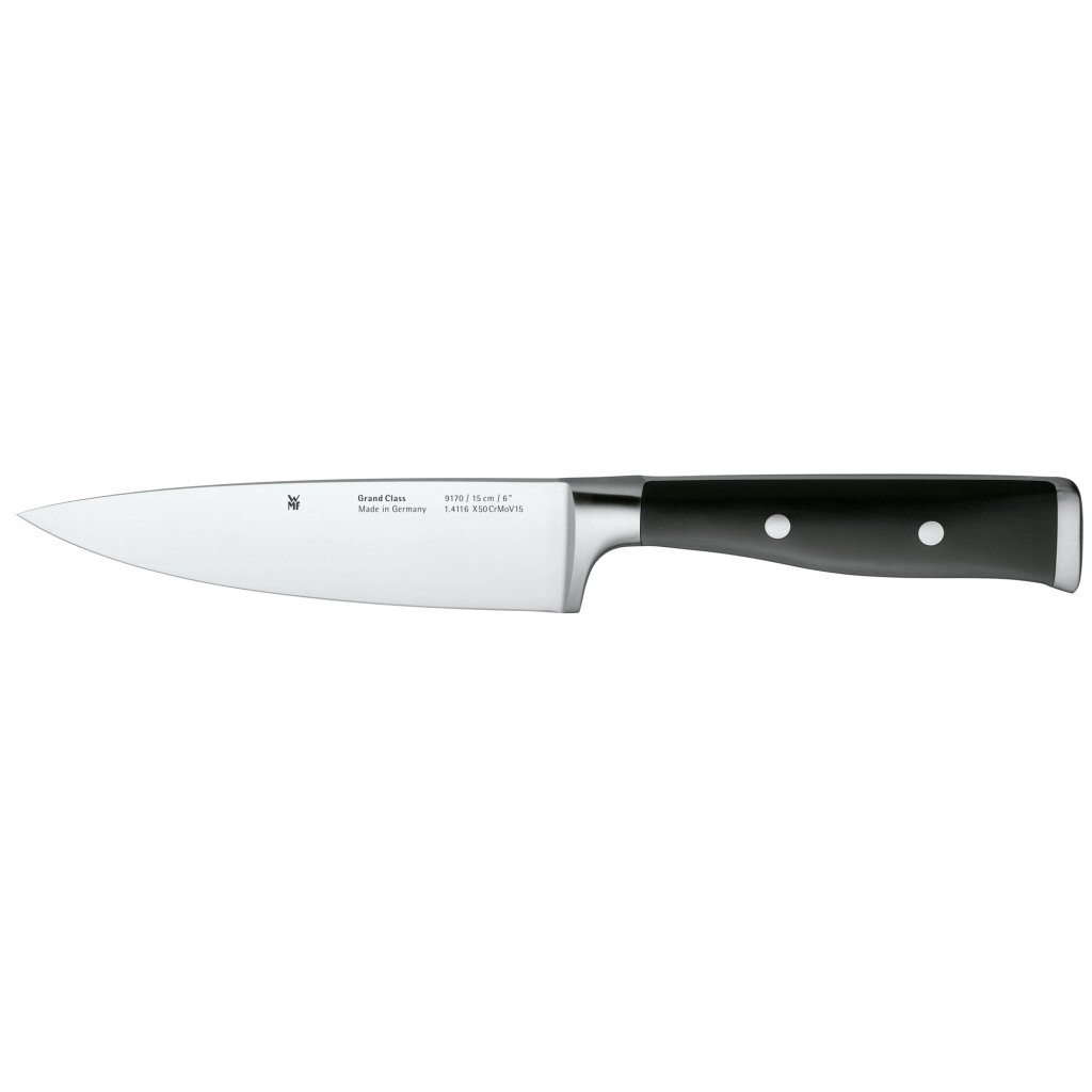 Grand Class Messer verbinden die Tradition der geschmiedeten Premium-Messer mit dem genieteten Griff der Marke WMF und zeitgenössischem Design. Die Messerklingen sind aus hochwertigem Spezialmesserstahl gefertigt. Sie werden mit der neuesten Performance-Cut-Fertigungstechnologie hergestellt. Das Ergebnis sind sehr scharfe Messer, die unempfindlich gegen Beschädigungen und Brüche sind und ihre Schärfe sehr lange beibehalten. Die Lebensdauer der Messer ist sogar doppelt so lang, wie es die Normen verlangen.