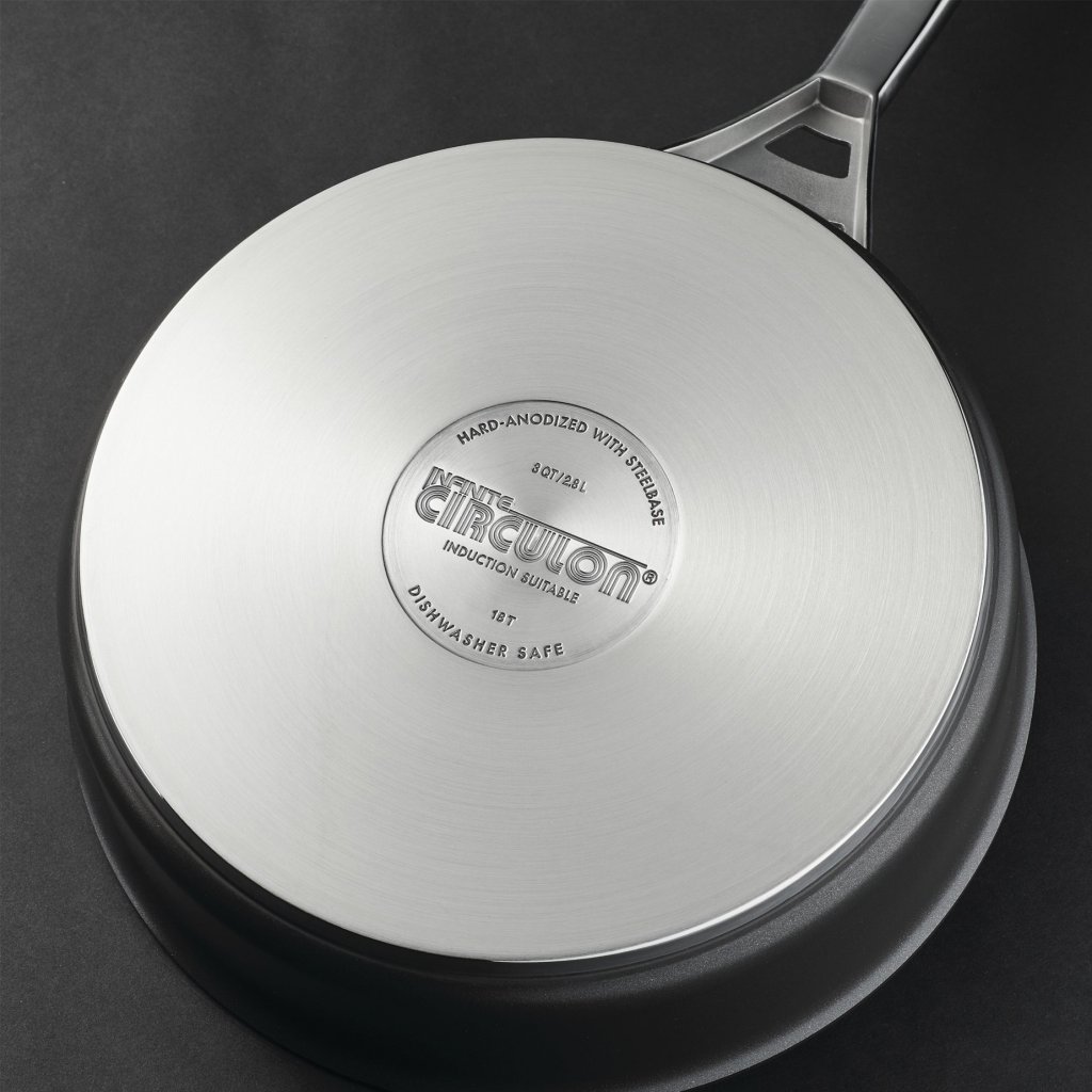 - Die Aluminiumkern-Konstruktion mit einem extradicken Stahlboden verteilt die Hitze gleichmäßig über die gesamte Oberfläche des Kochgeschirrs und hilft so, ein Anbrennen zu verhindern und eine präzise Kochkontrolle zu gewährleisten