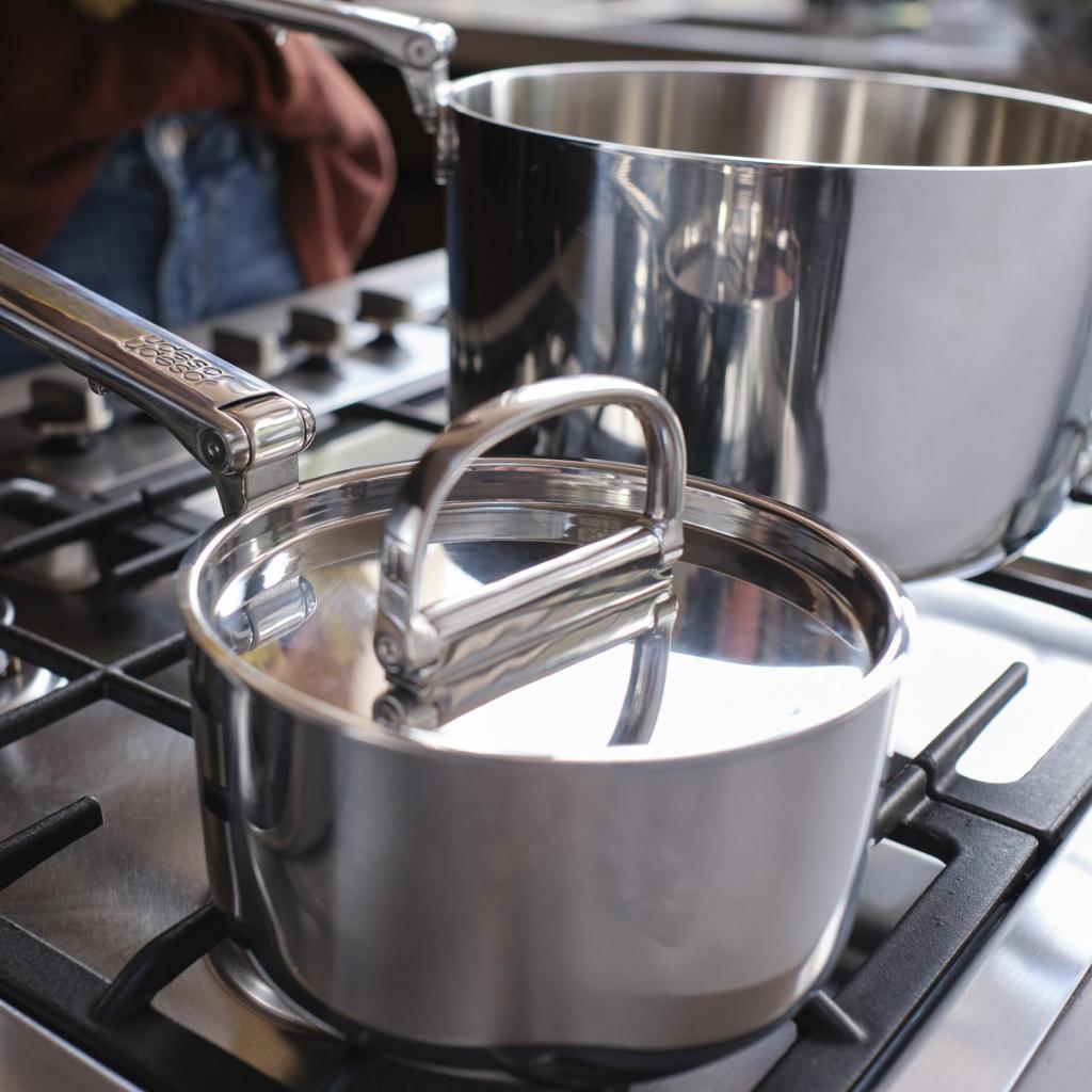 - Das Premium-Kochgeschirrset Joseph Joseph SPACE revolutioniert die Küchenorganisation dank eines ausgeklügelten Stapelsystems und einer professionellen dreilagigen Konstruktion.