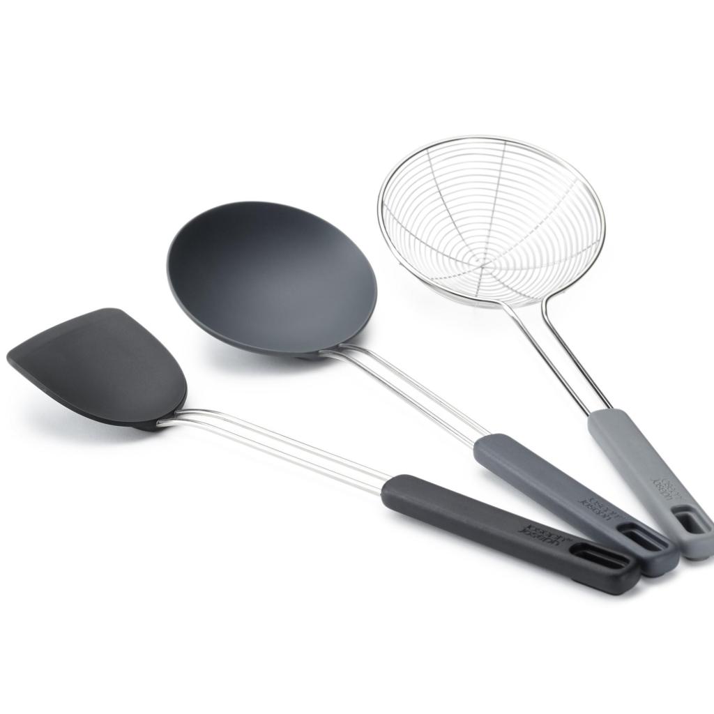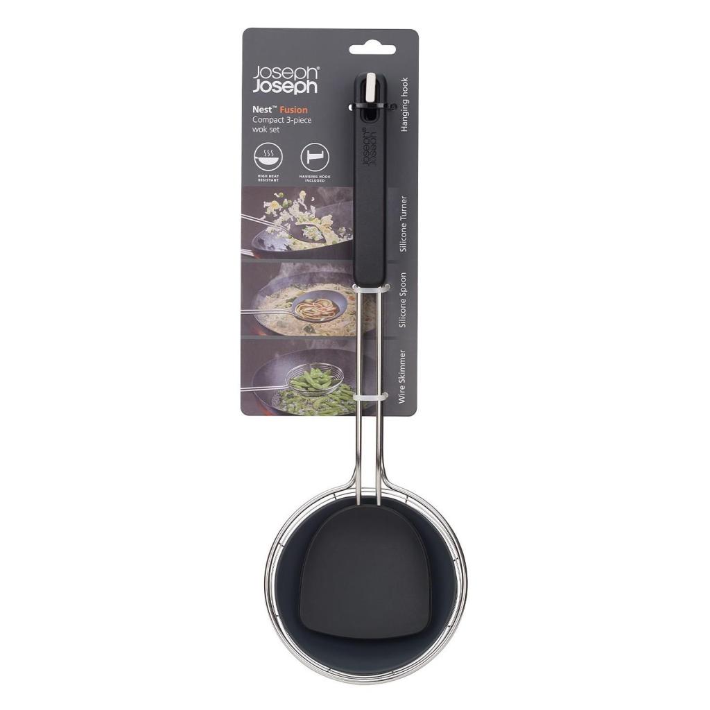 - Das Küchenset Joseph Joseph NEST FUSION WOK bietet drei praktische Werkzeuge für die Zubereitung von Wok-Gerichten in einem kompakten Design, das Platz in der Schublade und auf der Arbeitsplatte spart.