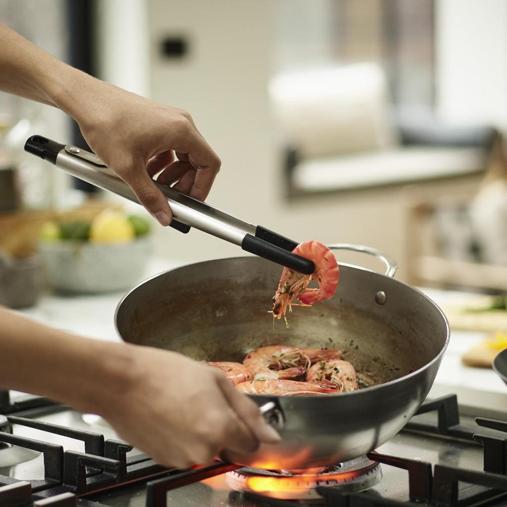 - Die Zangen eignen sich für das tägliche Kochen, das Servieren von Speisen und die Handhabung von Lebensmitteln beim Grillen.