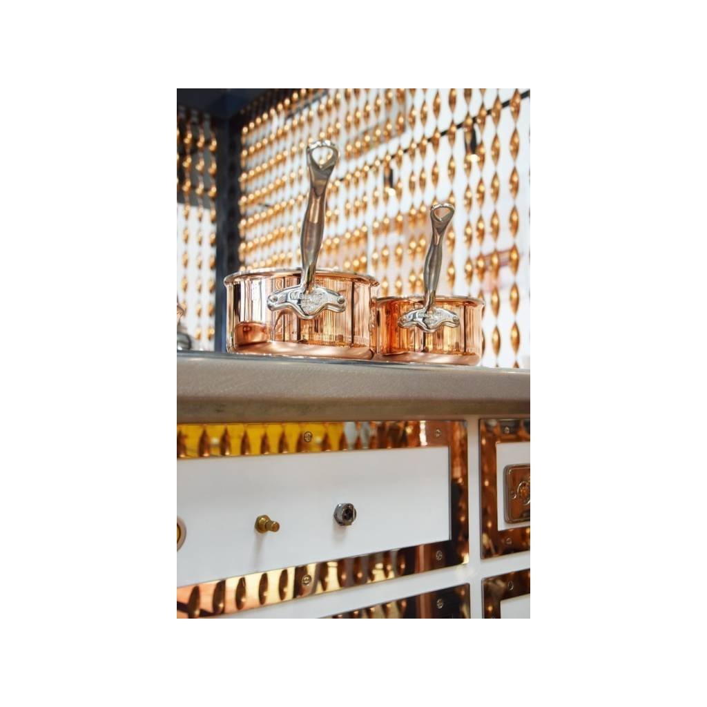 Francouzská firma Mauviel sídlí v normandském městě Villedieu-les-Poeles. které je po staletí domovem mědi, jež se zde zpracovává. Z této suroviny se skvělými užitnými vlastnostmi již po několik generací vyrábí ty nejluxusnější produkty pro profesionální i běžné vaření. Mauviel měděné nádobí perfektně vede teplo, čímž výrazně urychluje přípravu pokrmů a spoří tak čas i peníze. Variantu ale nabízí tato značka i pro ty, kteří preferují materiály jako je nerezová ocel, aluminium nebo ten nejkvalitnější nepřilnavý povrch. V pestrém sortimentu najdete například hrnce, pánve, pekáče, kuchyňské náčiní a další pomocníky. Poctivé ruční zpracování, vysoká odolnost a nádherný klasický design dělají z produktů Mauviel ozdobu každé kuchyně.