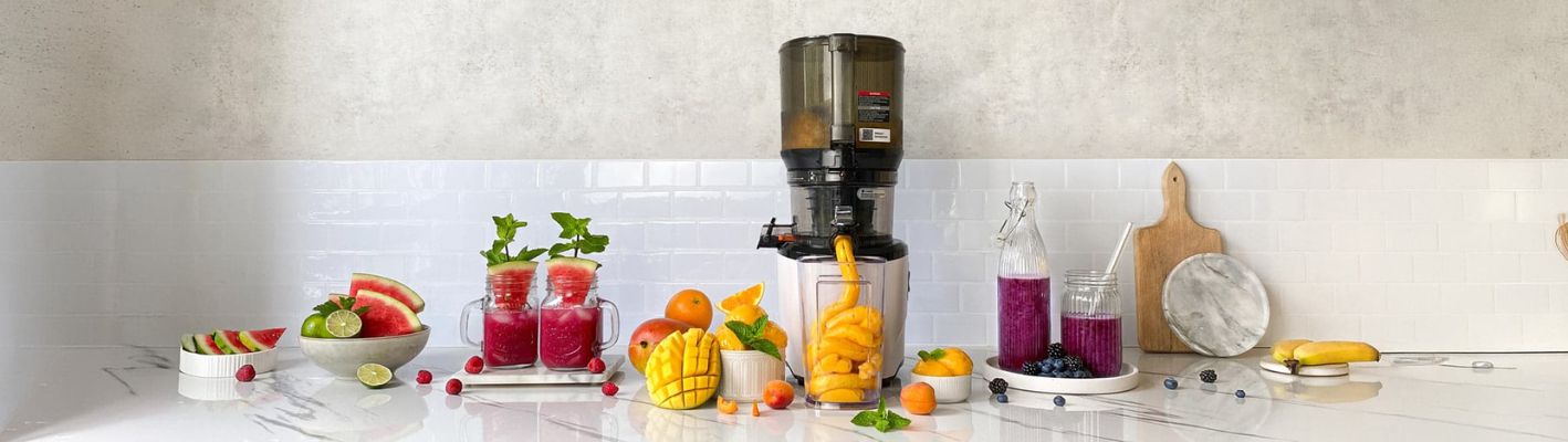 Das Flaggschiff der Marke sind Entsafter, die aus Obst, Gemüse und Kräutern maximalen Saft gewinnen und dabei Nährstoffe und Enzyme erhalten. Dank langsamer Pressung (Low-Speed Masticating Technology) sind die resultierenden Säfte reich an Geschmack und Nährwert – ohne Schaum, mit minimalem Abfall.
