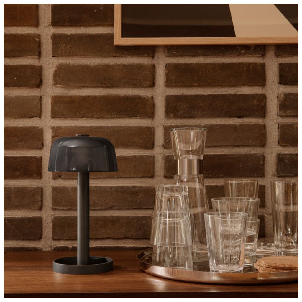 Die Tischlampe SOFT SPOT ist eine kabellose Lampe, die leicht zu versetzen ist und sowohl im Innen- als auch im Außenbereich verwendet werden kann. Der kuppelförmige Lampenschirm aus handgepresstem, bemaltem Glas hat eine weiche, organische Form, die an Kieselsteine am Strand erinnert - ja, an diese glatten Steine, die man immer anfassen möchte!
