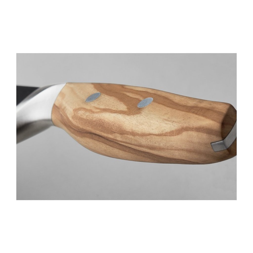- Die formgeschmiedete Klinge ist gepaart mit einem einzigartig gefärbten Olivenholzgriff, der jedes Messer zu einem Originalmacht